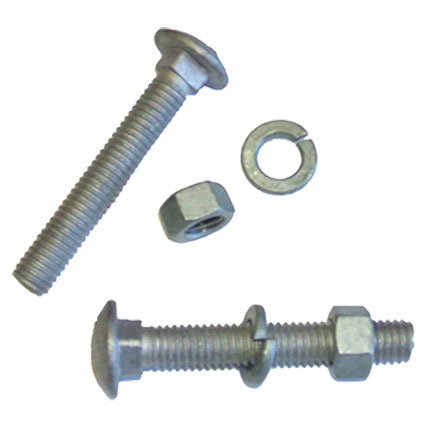 Bolts Galvanized, 3/8 inch x 2 1/2 inch Nuts and Lock Washers, 2x (8/pack), for steel parts with 7/16 inch holes. They are used to fix to the treated wood structure, the Dock Hardware Kits, 19101-19107-19111.